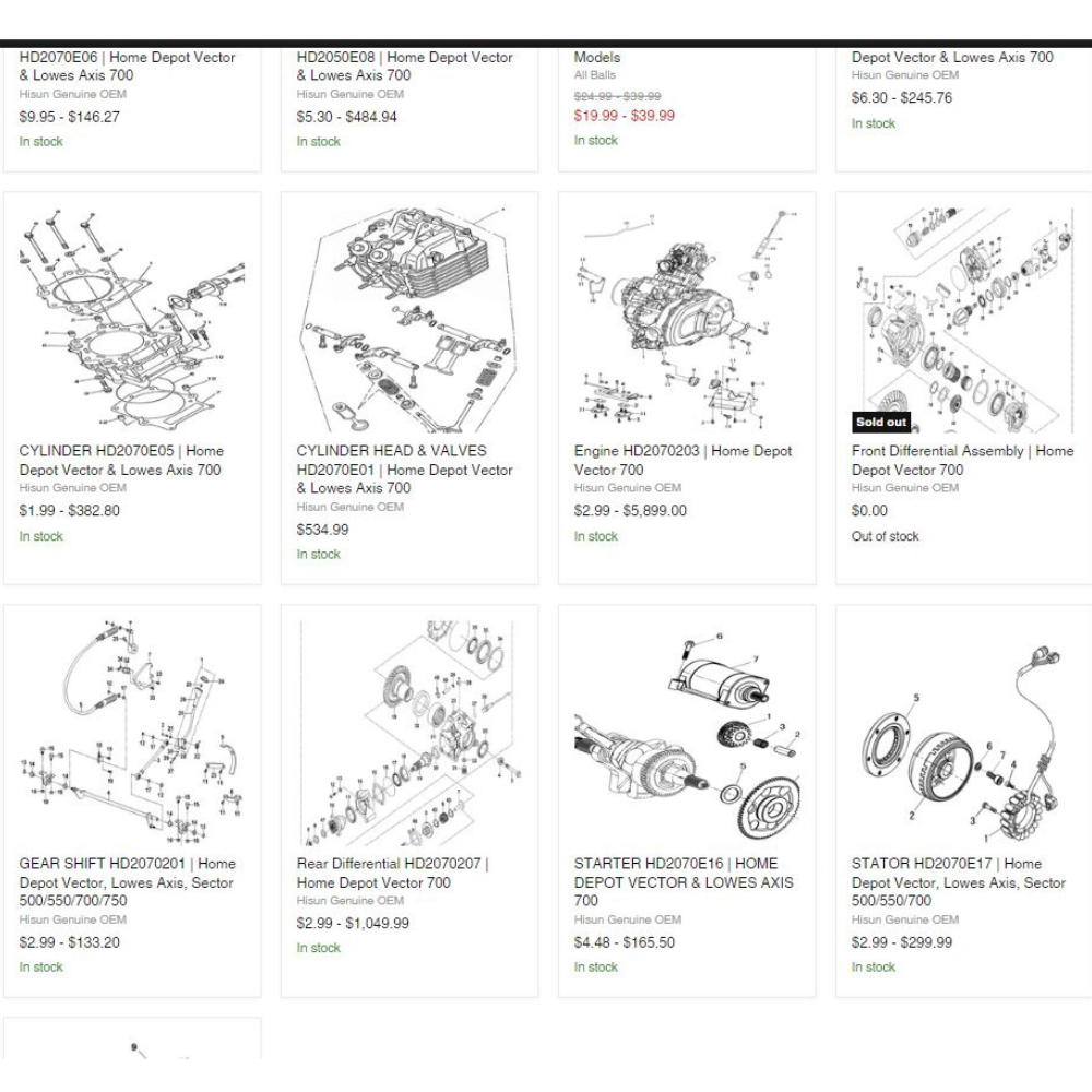 Hisun Parts CentralOriginal price $149.99Original price $149.99 - Original price $149.99Original price $149.99Current price $119.99$119.99 - $119.99Current price $119.99In stockFitment Tune up kit fits Vector 700, Sector 550 & 750 Coleman Outfitter UT550 UT750, Cub Cadet Challenger M550 M750 Bad Boy Bandit 550 750. M...